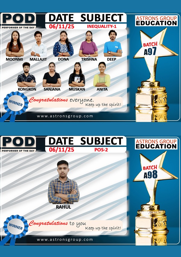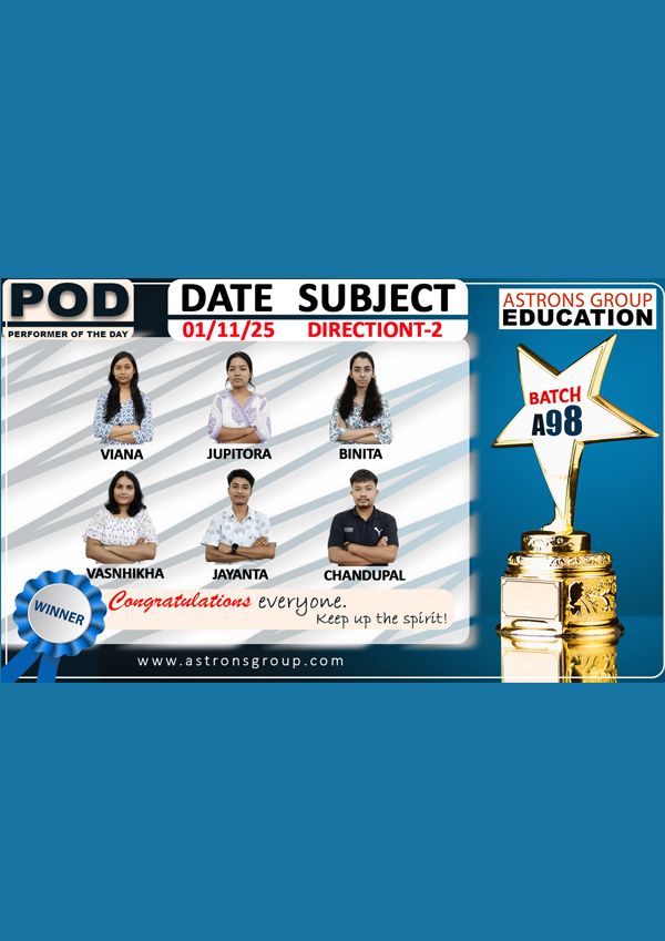 Astrons Group is a leading educational institution in entire Northeast that provides comprehensive test preparatory services to students preparing for Bank(PSB) / SSC / Railways / MAT / CAT / Insurance / ASSAM SI / ADRE / OIL / ONGC / PSU & various other STATE / CENTRAL Government Job Examinations.